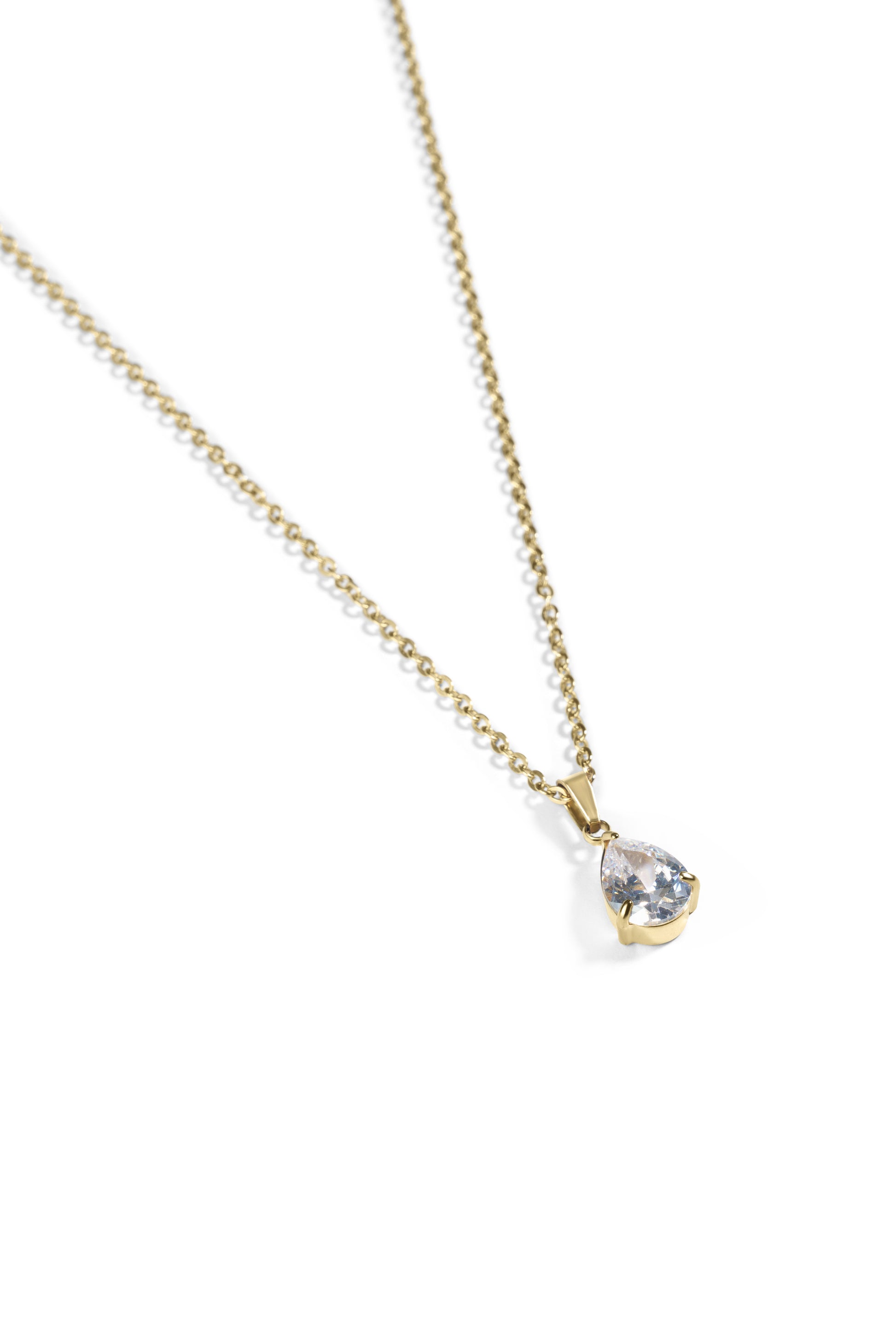Add some dazzle to your everyday look with Drop - the playful 18k gold plated necklace featuring a big zircon. Stand out from the crowd with this quirky accessory!