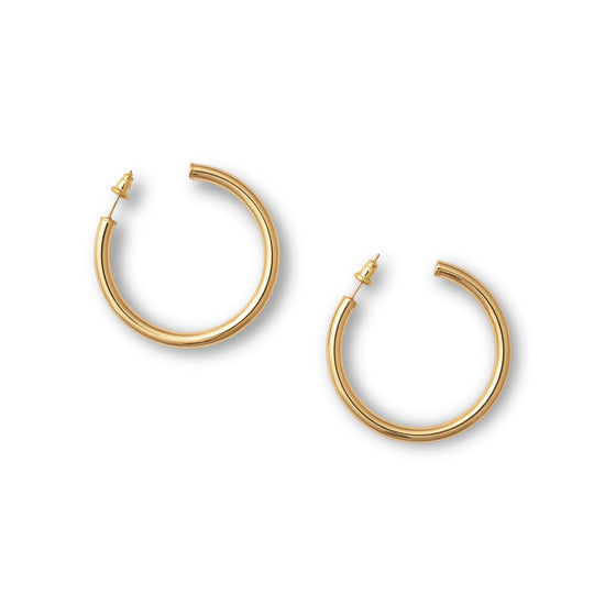 Our Classic Hoops 42mm are the perfect accessory for any classic look. Their 18k PVD gold plating adds a bit of luxe to your everyday wear, so you can look sophisticated without trying too hard. Upgrade your style game with a pair today!