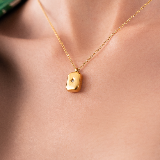 Twinkle is a modern necklace crafted with sparkling zircon stones that twinkle in the light. The brick design adds a unique touch to this elegant piece, making it the perfect accessory for any outfit. Add a touch of glamour to your look with Twinkle.