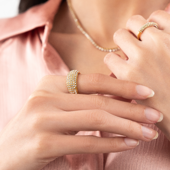 Looking to add some sparkle to your date night? Look no further than Crush. This classy ring features dazzling zircons that will have you shining like a starry night. Perfect for adding a touch of glamour and fun to any outfit.
